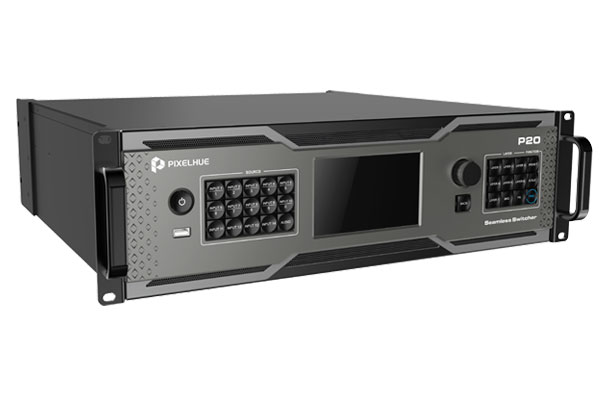 The Pixelhue P20 is a powerful 4K presentation switcher designed for demanding live events, installations, and performance environments. Based on a high-performance FPGA architecture, the P20 delivers ultra-low-latency 4K60 p video processing with seamless transitions, multi-screen control and advanced image effects.
